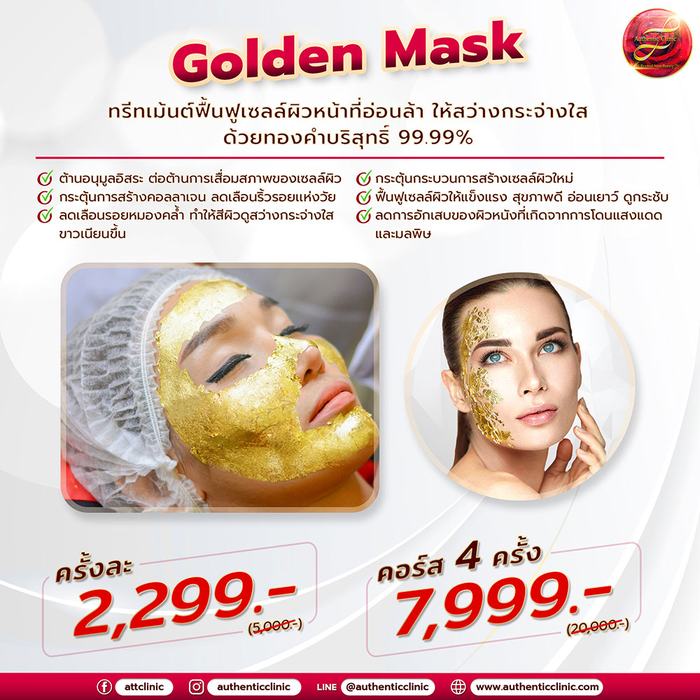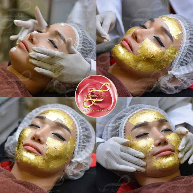 การฟื้นฟูผิวหน้าด้วยทองคำ เป็นการบำบัดผิวโดยการใช้แผ่นทองคำบริสุทธิ์ ซึ่งทองคำที่นำมาใช้ในทรีทเม้นต์ นั้นไม่ใช่ทองติดองค์พระ เเต่ผลิตจากทองคำแท้ๆ 99.99% หรือทอง 24K ปิดลงบนผิวหน้าที่ผ่านการทำความสะอาดด้วยคลีนซิ่งสูตรน้ำนมที่ทำความสะอาดสิ่งสกปรกและเครื่องสำอางค์บนใบหน้าได้อย่างล้ำลึกพร้อมบำรุงผิวให้เนียนนุ่ม ตามด้วยขั้นตอน การทรีทเม้นต์ด้วยระบบคลื่นความเย็นสำหรับผิวหน้า Miracle Glacial Treatment ช่วยฟื้นฟูสภาพผิวที่ดูหมองคล้ำ ไม่ผ่องใสให้กลับมาดูขาวใสอมชมพูได้ดั่งเดิม และยังสามารถลดการสร้างเซลล์เม็ดสีที่ผิดปกติ จากสภาวะแวดล้อมเปลี่ยนแปลง อันเป็นสาเหตุของการเกิดฝ้า กระ และทำให้จุดด่างดำดูจางลงได้อย่างมีประสิทธิภาพ พร้อมทั้งยังช่วยผ่อนคลายผิวได้เป็นอย่างดี จากนั้นจึงนำทองคำมาวางบนผิวหน้า แล้วนวดพร้อมกับเซรั่มคอลลาเจนเข้มข้นสูตรพิเศษเพื่อให้เซลล์ผิวหน้าได้รับการบำรุงและฟื้นฟูอย่างเต็มที่